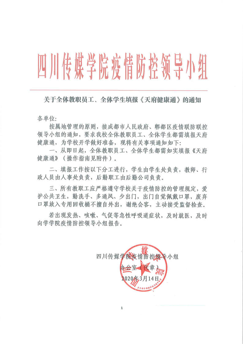 关于全体教职员工、全体学生填报《天府健康通》的通知
