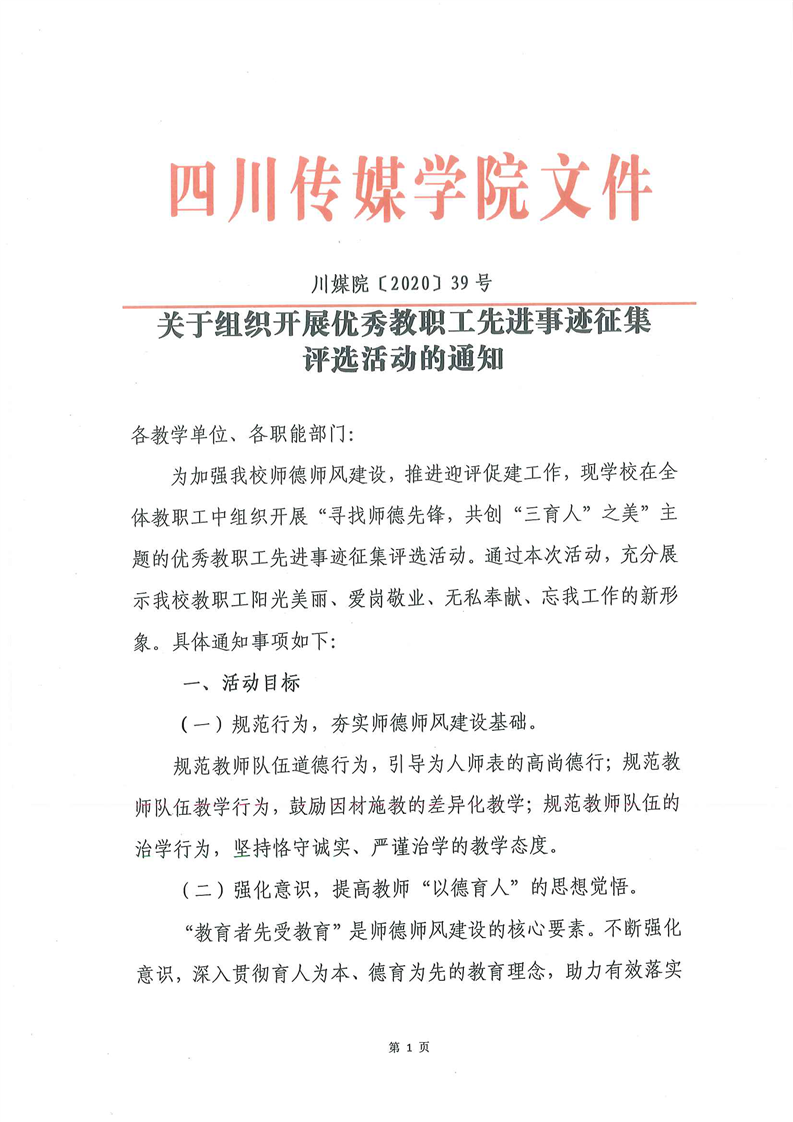 关于组织开展优秀教职工先进事迹征集评选活动的通知