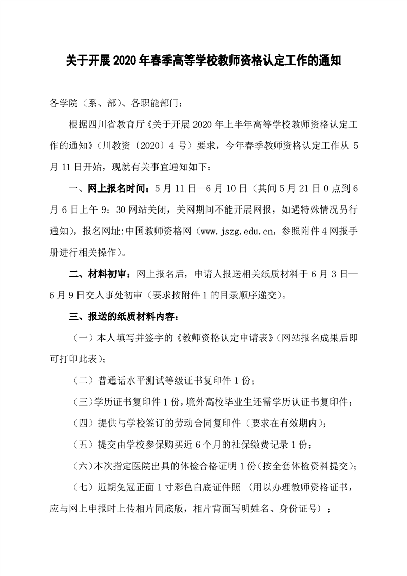 关于开展2020年春季高等学校教师资格认定工作的通知