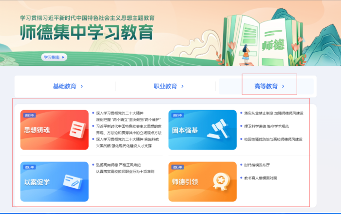 学习内容分为思想铸魂、固本强基、以案促学和师德引领四个部分。